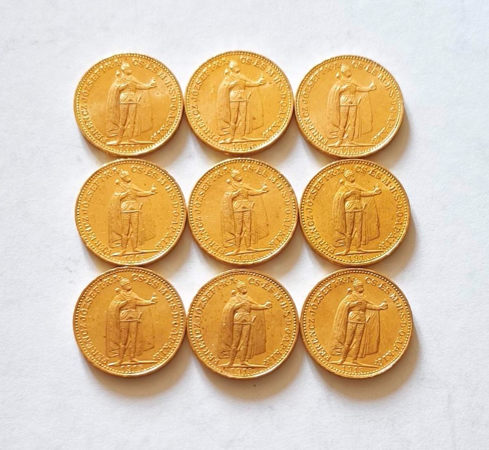 10 koruny KB+BZ – Au 900,váha 3,39 g ,průměr 19 mm– Cena 11.200 kč